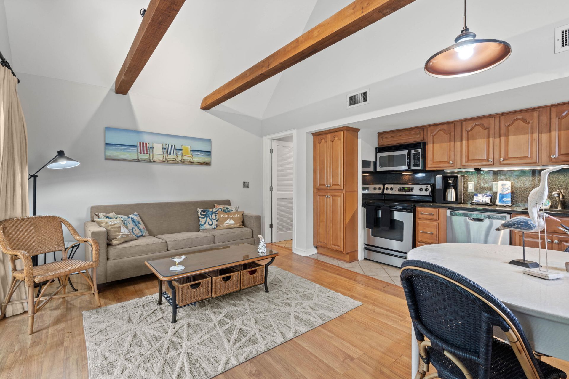 One of the CLOSEST VILLAS TO THE OCEAN! Almost Ocean Front- Welcome to 4225 Mariners Watch on Kiawah Island. This beautifully positioned second story 1-bedroom, 1-bath end-unit villa is ideally located just one row back from the ocean, offering the perfect blend of convenience, privacy, and coastal charm.Enjoy easy beach access just steps away while benefiting from reduced exposure compared to direct oceanfront properties. From select areas of the villa, you can capture glimpses of the ocean and enjoy the soothing sound of the waves.The light-filled end unit offers added privacy and features a spacious screened porch overlooking serene natural surroundings--perfect for relaxing or entertaining. Steps away from the ocean and steps away to Night Heron Park. Whether you're seeking a primary residence, vacation getaway, or investment opportunity, this villa presents an exceptional chance to own in one of Kiawah Island's most desirable locations. Brand New HVAC System, Hot water Heater is 3 years Old. Experience the best of both worlds--close to the beach, yet peacefully tucked in.Sold Furnished. Excellent Rental History! Buyer to Pay one-time fee of 1/2 of 1 percent purchase price to KICA Reserve Fund.